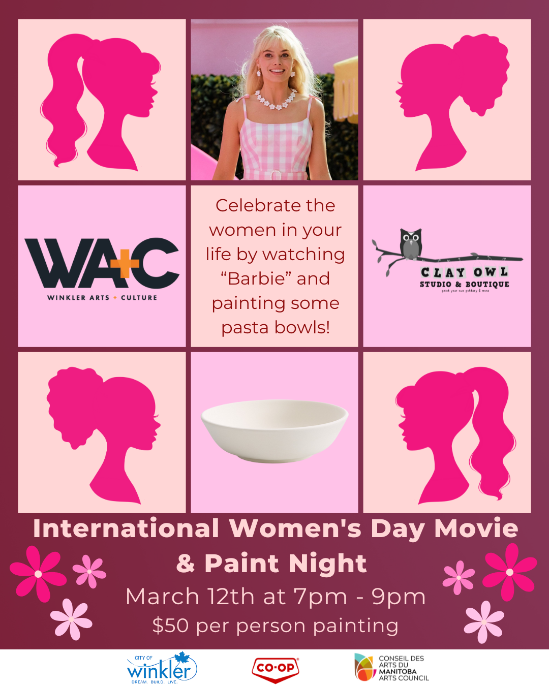 Celebrate International Women’s Day with a creative night out! Join us for a Barbie Movie & Paint Night, where you’ll watch Barbie while painting your own ceramic pasta bowl. It’s a fun, relaxed evening to celebrate the women in your life, get creative, and enjoy some snacks and laughs.